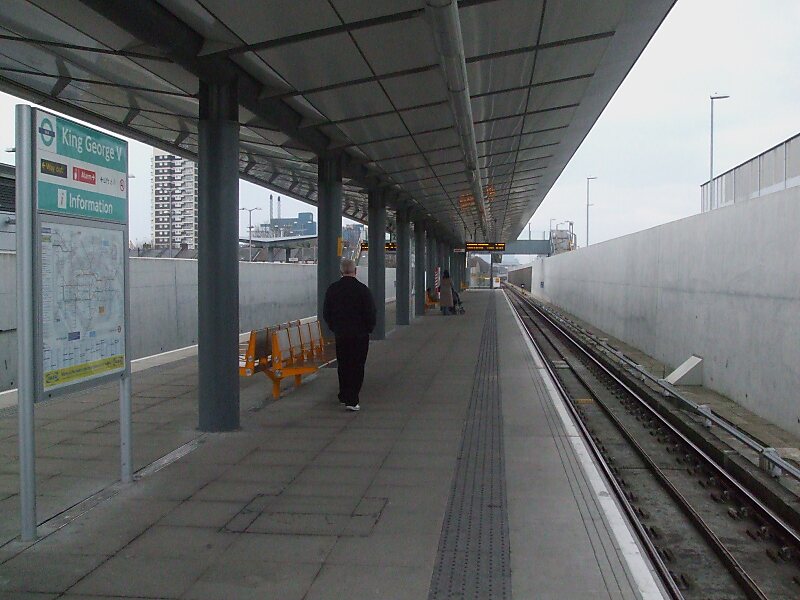 国王乔治五世站 ,因邻近国王乔治五世码头而得名。车站自2005年起,成为国王乔治五世支线的临时终点站。2009年起,该支线延至伍力奇阿仙奴站。车站位于伦敦第3收费区。