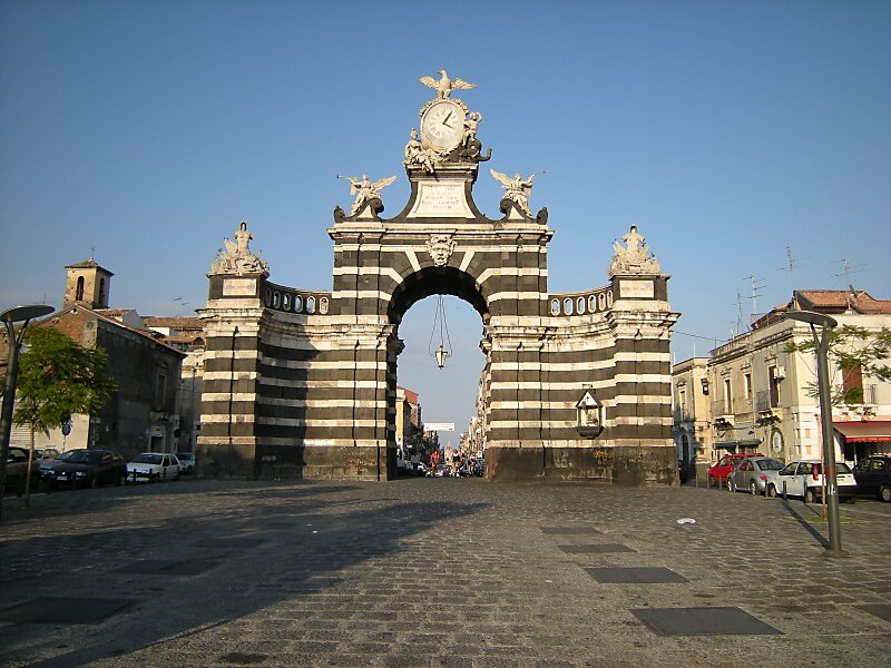 加里波第门 ,原名费迪南多门 ,是一个凯旋门,位于意大利卡塔尼亚福蒂诺区 的朱塞佩·加里波第街 尽头,介于帕勒斯广场 和十字架广场 之间。建于1768年,由斯特凡诺·伊塔尔 和弗朗西斯·巴塔利亚 设计,以纪念费迪南多一世和玛丽亚·卡洛琳娜的婚礼。