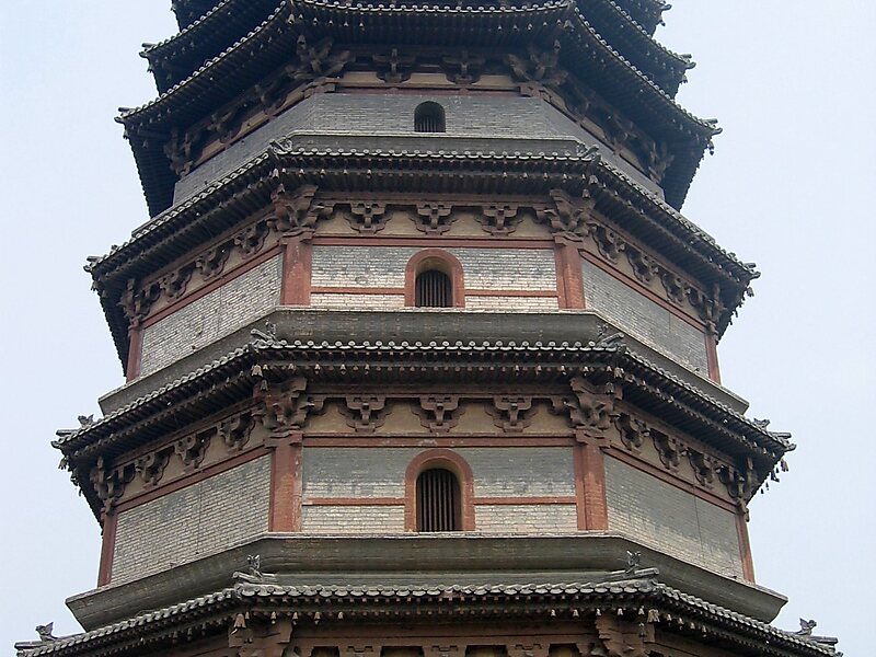 凌霄塔,位于河北省正定县老城内大众街北侧原天宁寺内,共九层,高42米,始建于唐肃宗至德元年 。原名“慧光塔”,因为塔身全为木结构,当地人又俗称“木塔”,是中华人民共和国全国重点文物保护单位,现存为数甚少的木塔之一。塔呈八角形,是一座下砖上木、砖木混合的楼阁式塔,一至四层为砖砌结构,五层以上全部为木构建筑。在中国现存的半木结构的古塔,只有河北正定和甘肃张掖两处,而凌霄塔的始建时间又早很多。