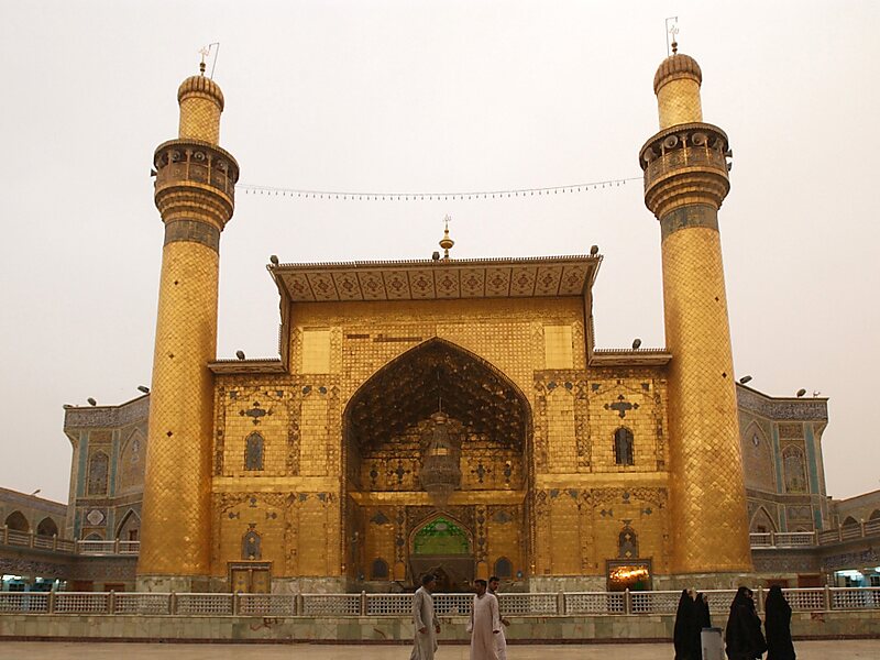 纳杰夫 位于伊拉克南部的幼发拉底河河岸,距离首都巴格达有160公里。由于什叶派创始人阿里·本·阿比·塔利卜安葬于此,因此纳杰夫是伊斯兰教什叶派的圣城,亦是什叶派历年以来的政治中心。它亦是纳杰夫省的首府。根据2003年的人口统计,纳杰夫市有人口28.65万人,但由于海外移民的涌入,现时人口已大大超出此数。