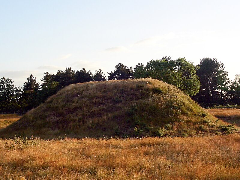 萨顿胡 ,英国英格兰萨福克郡伍德布里奇附近的庄园,内有盎格鲁-撒克逊国王的墓葬。1939年发现,是欧洲最为富丽堂皇的日尔曼式墓葬之一。棺椁是一只船,船里装满为死者准备后世用的一切物品 。船板已经腐烂,但铆钉尚存。船长24米,高7.6米。据现场发掘钱币判断,很可能为东英吉利国王雷德沃尔德的衣冠冢 。但也可能是阵亡的埃塞希尔 的坟墓。船葬的方式和墓中的一些物品。与瑞典相同,因此肯定东英吉利王朝的祖先是瑞典人。葬地有41件纯金制品和大量进口银器,现藏不列颠博物馆。在一张大银盘上有拜占庭国王阿纳斯塔修斯一世 监制的印章,这是英格兰迄今发现的唯一可观的拜占庭古物。此外,刻有希腊文的银碗,银杯和银匙,以及从近东输入的一件青铜器,表明东英吉利国王贸易范围的广泛。