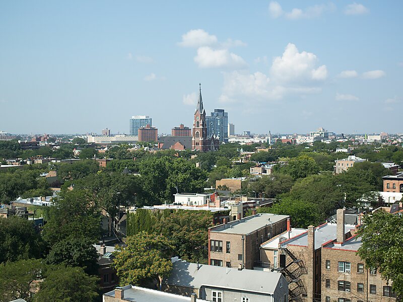 圣弥额尔堂 是一座罗马天主教教堂,位于美国芝加哥老城克利夫兰大街,1852年为服务德国移民而设立。1869年建成一座大型砖砌教堂,当时其钟楼为芝加哥最高建筑,直到1885年被芝加哥期货交易所大楼超过。 该堂为1871年芝加哥大火幸存的6座建筑之一。当时芝加哥建筑大多用木材建造,而该堂为砖砌。灾后该堂重建,并成为波多黎各人的重要中心。