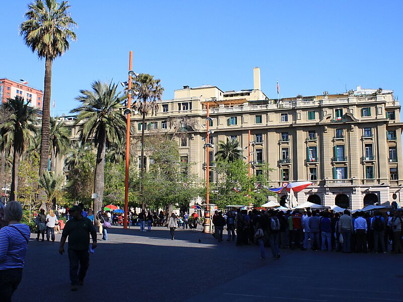武器广场 是智利首都圣地亚哥的心脏。这里是该市方格网初始布局的核心。城市设计是由1541年佩德罗·德·瓦尔迪维亚任命的佩德罗·甘博亚完成。 环绕广场周围是一些历史建筑,包括圣地亚哥主教座堂、中央邮局大楼、王宫,以及圣地亚哥地方政府所在地。