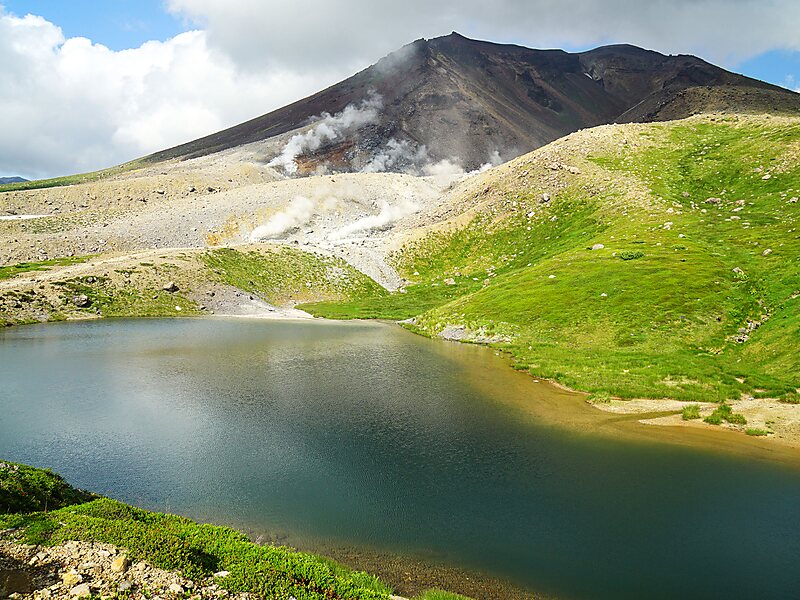 旭岳 位于日本北海道上川综合振兴局上川郡东川町的火山。是大雪山与北海道的最高峰。标高为2,290米。 从东川町的旭岳温泉到姿见池 设有大雪山旭岳缆车,游客可以轻松地登山。但是由于海拔较高,需要对天气的突变做好一定的准备。在这里可以看到本州3000米以上的山脉才能看到的植物,如果幸运的话,也能观察到花栗鼠。 曾经计划在山中兴建北海道道212号旭川大雪山层云峡线连结位于旭岳东北的层云峡地区及位于西南侧的旭岳温泉地区,但在2000年决定放弃,并将已完成部分分割为北海道道1160号旭川旭岳温泉线和北海道道1162号银泉台线。