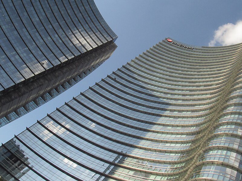 裕信银行大楼 是位于意大利米兰的高层建筑,目前作为意大利裕信银行的总部大楼使用,完工于2011年。其建筑群共有三座大楼,其中最高的一座高231米 ,是目前意大利最高的建筑。裕信银行大楼由著名的阿根廷裔美国建筑师西萨·佩里设计,外观略呈螺旋状,整个外墙装饰均采用玻璃覆盖,如果光线映射到壁板上,它便会将光线导入建筑内部,帮助这栋建筑降低照明成本及取暖成本。